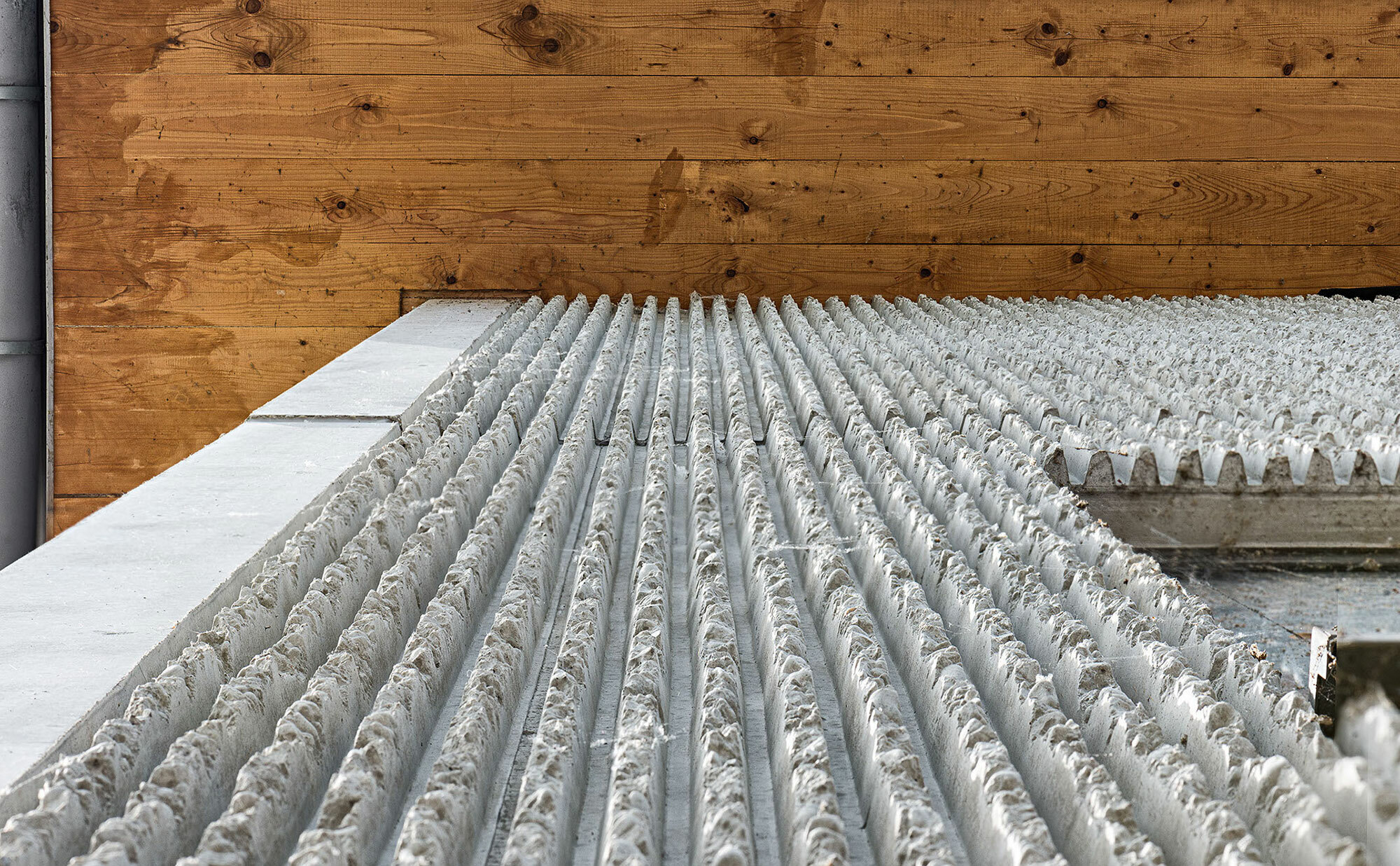 Bei der Planung stand nicht nur die funktionale Bedarfsdeckung im Fokus, sondern ebenso das Streben nach einem architektonisch harmonischen Gesamtbild. Die aus Fertigteilen konzipierte Fassadenstruktur präsentiert sich bewusst vielschichtig und unregelmäßig, wodurch sie gezielt Schallreflexionen minimiert.