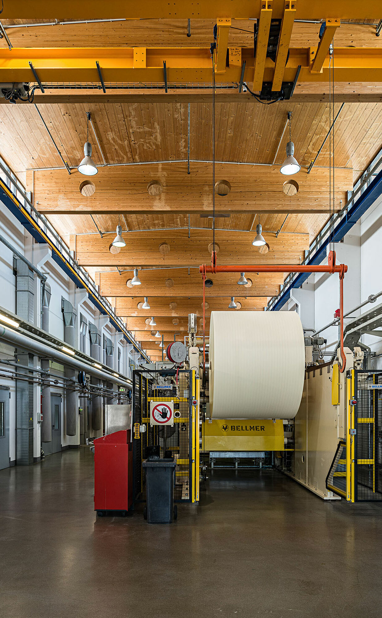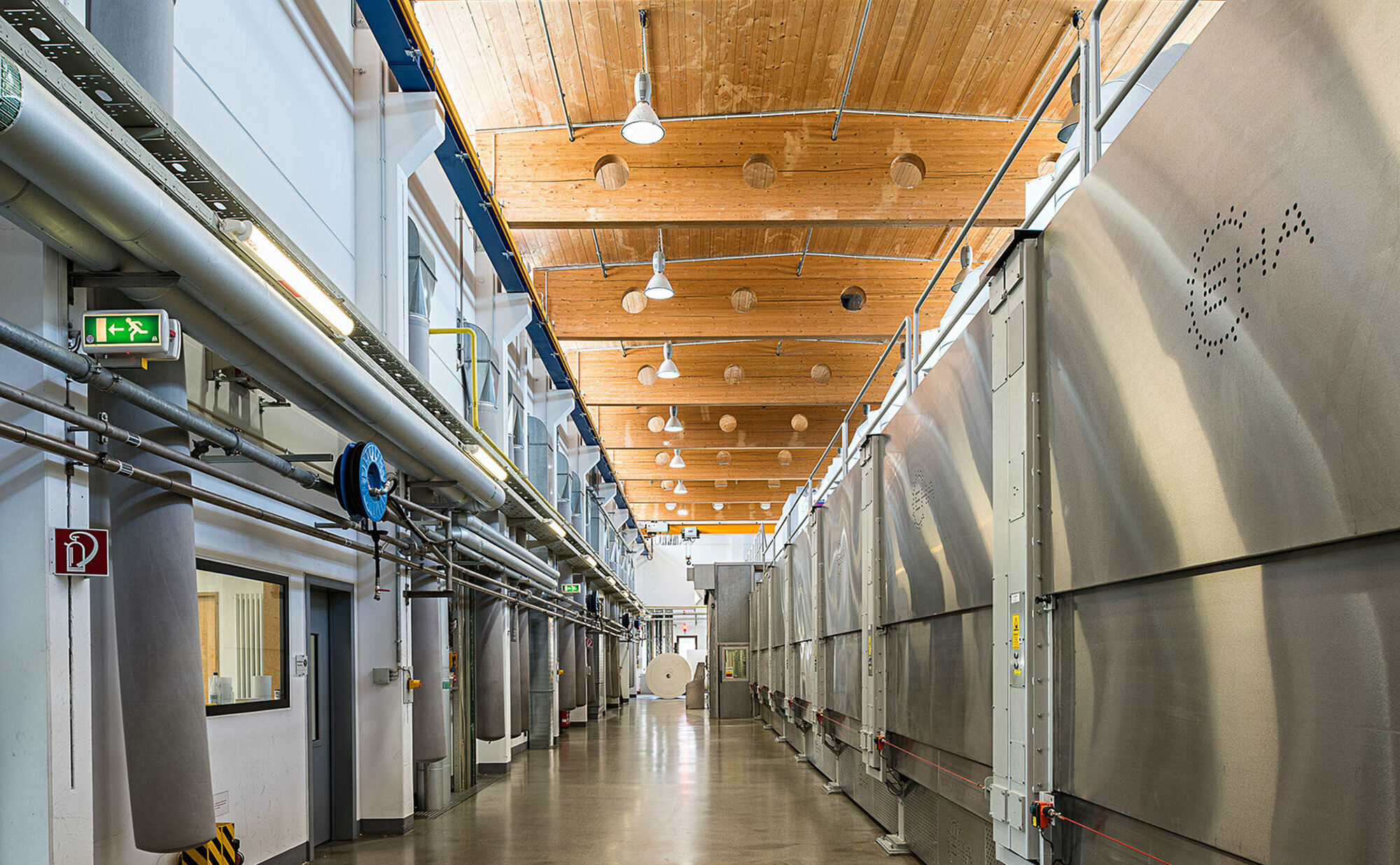 Im Zentrum der mehrgeschossigen und in Fertigbauweise errichteten Werkhalle ist eine ca. 60 Meter lange Imprägniermaschine platziert. Entlang der Längsseiten sind Büroräume, Sozialräume, Nebenräume wie Tanklager, Lüftungsanlage, etc. sowie der Anlieferbereich angeordnet.