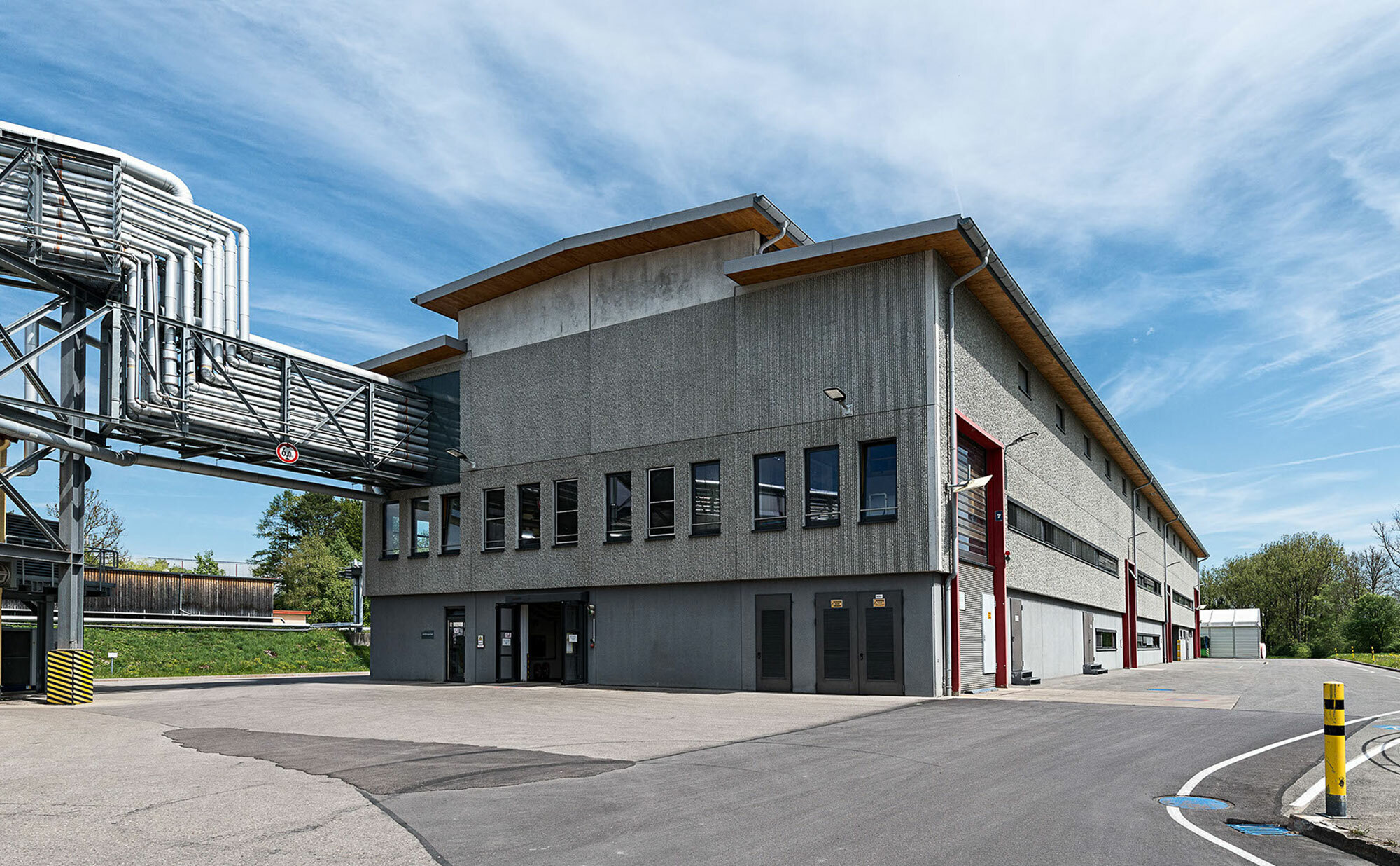 Der Industriebau mit seiner dreischiffigen Form erfüllt die Anforderung, eine funktionelle Halle zu entwerfen, die gleichzeitig architektonisch hochwertig und optisch ansprechend ist.